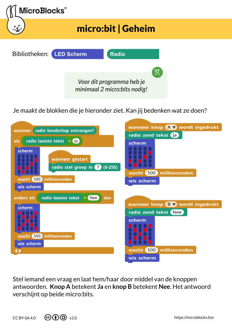 Stuur geheime antwoorden naar een andere micro:bit met dit programma.